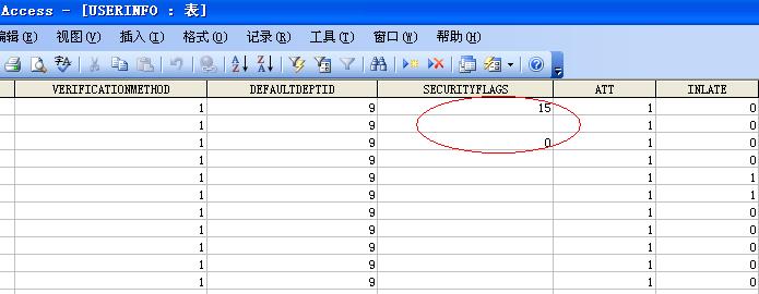 双击打开,找securityflags这个字段,将这个字段所在的列中所有的数字全部删除(15代表管理员);找到password字段,将这个字段所在列中所有的数字全部删除。如下: