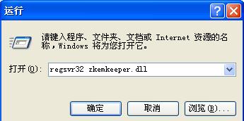 注册控件方法:点击开始-运行-输入regsvr32 zkemkeeper.dll,如下: