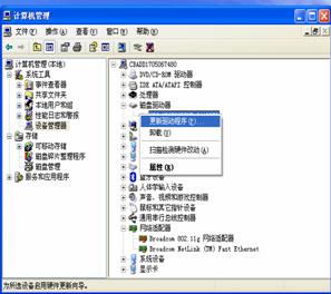 单击右键-选择更新驱动程序菜单进行更新驱动程序。更新的时候,可以指定到关盘中安装文件file文件夹。
